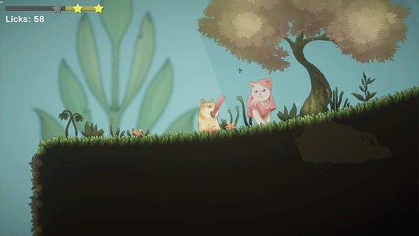 左上角玩家能看到舔次,在这里玩家要操控自己的狗狗角色,运用技巧翻越各类高山;