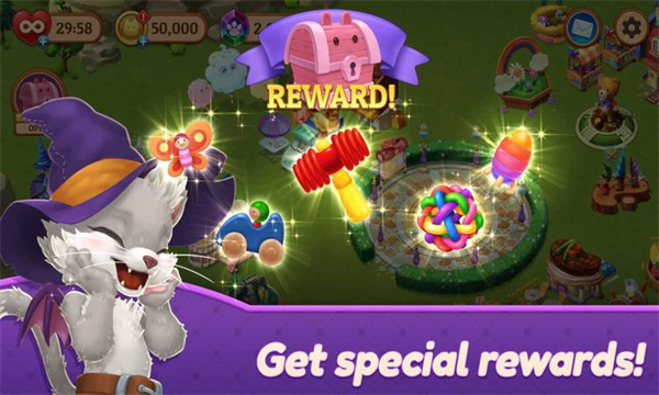 《Fantasy Toy Island》是一款趣味十足的休闲娱乐游戏。这座岛屿因长久无人到访而日渐荒废,现在,你可以用自己的双手重新装点它!与萌趣可爱的猫咪伙伴一同经营岛屿,尽情体验丰富多彩的消除玩法。游戏内设有两种不同类型的消除模式:一种是可爱玩偶主题的三消玩法,另一种则是收集同色魔方并进行爆破的趣味挑战。感兴趣的朋友们,快来开启这段奇妙的岛屿改造之旅吧!