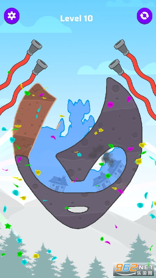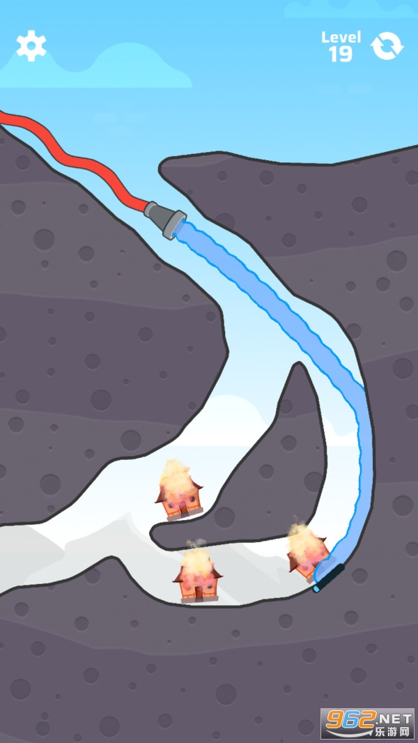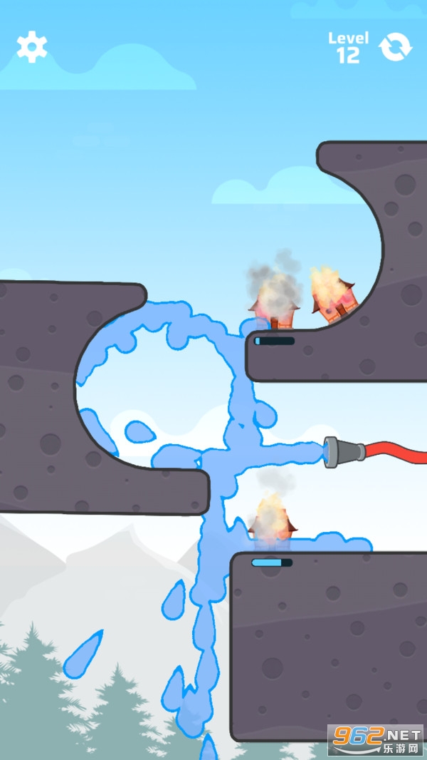 游戏的关卡设计很有意思,需要巧妙运用各种机关,才能让水流顺利抵达着火的房子。