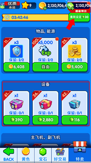 之后选择下方三种类型的装备箱就能开出随机装备,装备箱都是系统随机刷新的。要是购买后没得到想要的武器,或者没刷出心仪的武器,点击右上方的免费刷新按钮,或者花费30钻刷新就可以了。