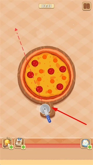 5、点击进入烤箱后,等待烤制完成后取出,使用披萨刀将其切开,即可完成第一个披萨的制作。