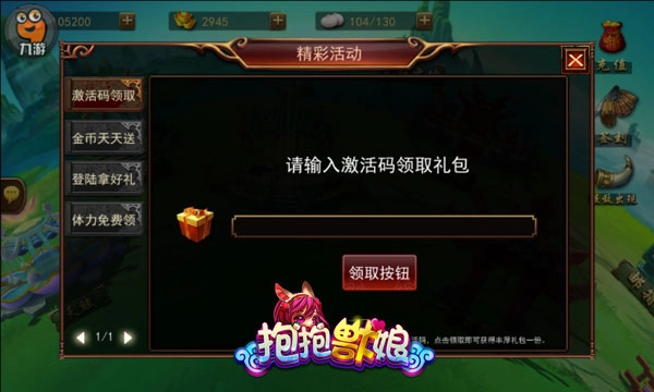 《抱抱兽娘》二次内测新增激活码功能,玩家可通过九游礼包界面领取激活码,也能在游戏界面点击浮标进入礼包页面领取。领取后,在游戏内“活动”界面的“激活码领取”入口输入激活码即可兑换奖励。温馨提示:每个玩家仅能领取一次激活码哦。