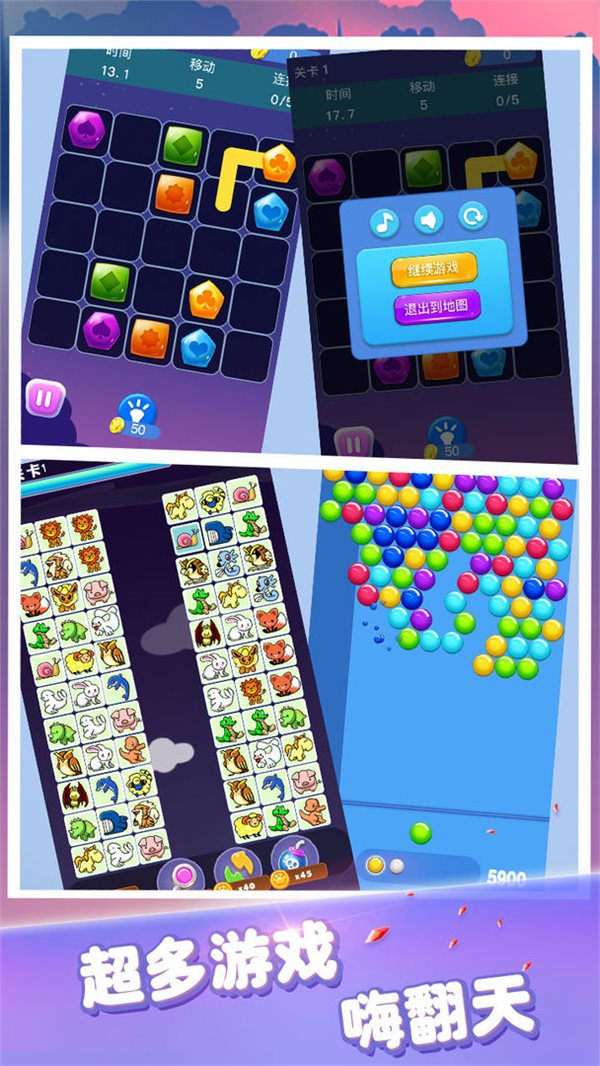 3、里面包含各类经典小游戏,无论是连连看、泡泡龙,还是宝石连线、数字消除,一应俱全!