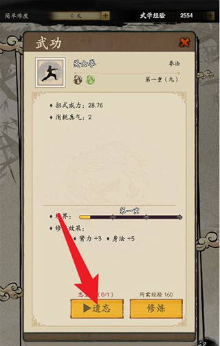 接着我们点击要遗忘的武功。