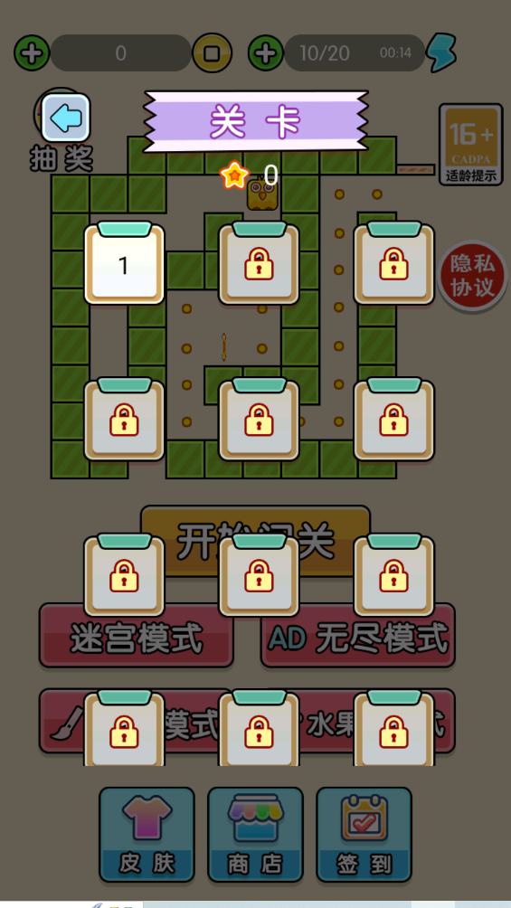 比如选择关卡模式,点击开始闯关,选择关卡一。