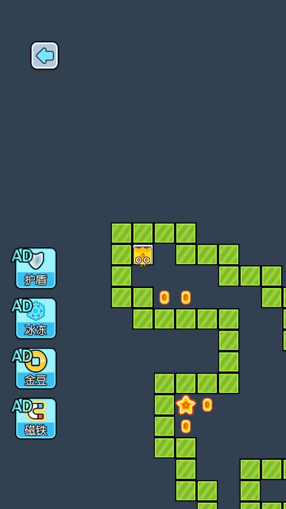 你需要控制角色顺利抵达终点,吃掉路上的道具。