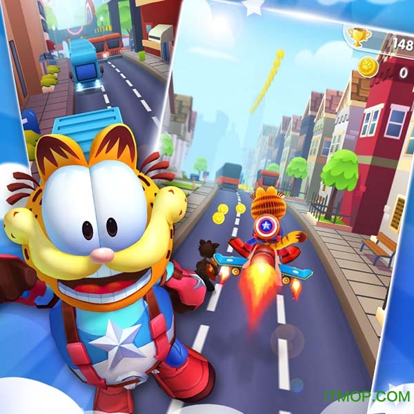 在游戏里奔跑时,加菲猫会时不时转身摆出各种POSE,有趣道具的使用让人忍俊不禁,浑身是笑料的它一举一动都充满笑点,就连迈着八字步跑步的样子都能让人笑场连连。