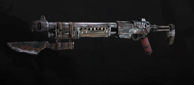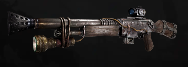 这玩意儿也叫老喷子,是在废土上讨生活的人们最钟爱的防身家伙事儿之一。它成本低、劲儿却贼大,后来经过改造,在枪口底下加了块金属刀刃——关键时刻能当刺刀拼杀,平时切菜剁肉也能用,真是一举好几得,堪称废土上打架抢货、居家出门都离不开的好东西。
