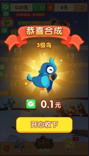 2、三只相同的鸟合成之后就会得到更高等级的新鸟类
