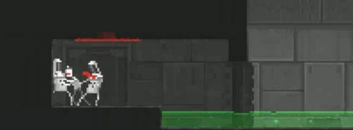 那种绿色的液体含有毒性,僵尸没办法在里面长时间停留,我们可以通过把僵尸抛过去的方式来解决掉穿着防护服的人。