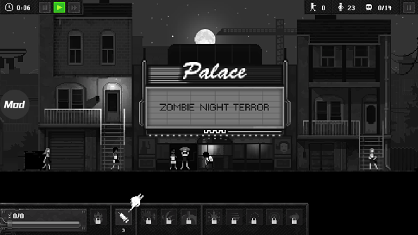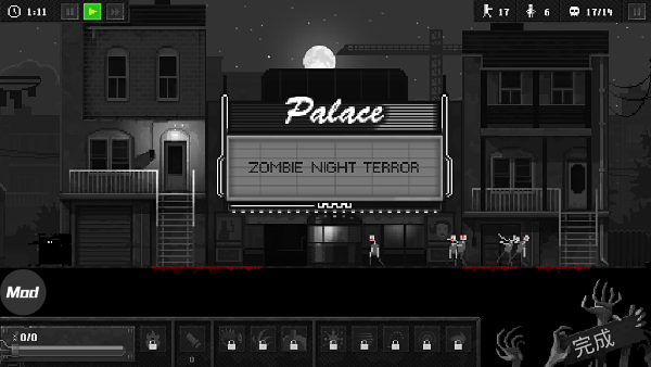 这款游戏的模式种类十分丰富,而且每种模式里都包含着各式各样的玩法。接下来我们进入第一个广为人知的感染模式,选择其中的电影恐怖夜关卡。在这个关卡中,只要感染3个人类,再杀死14个人,就能挑战成功。现在,点击绿色的播放按钮,开始游戏吧。