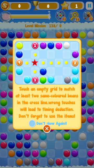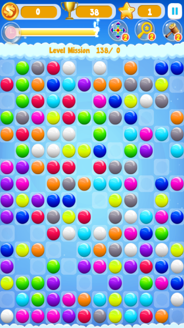 1. 进入游戏,查看LevelMission任务要求,明晰关卡目标,留意彩色球的分布情况,探寻可消除的组合。