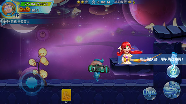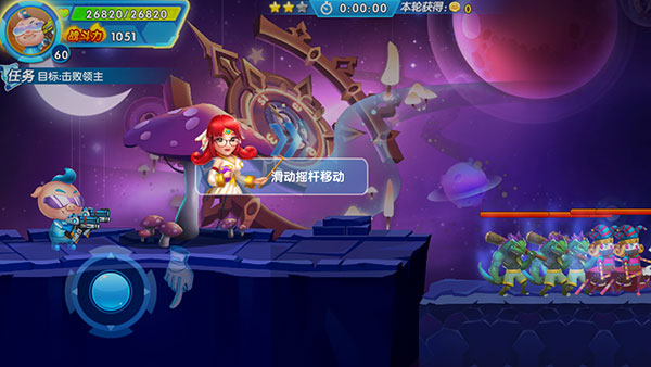我们遵照指示,滑动左边的摇杆,操控角色向右侧移动。