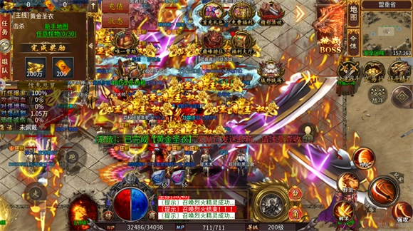 6、BOSS类型包括:精英BOSS、三宝BOSS、超级BOSS、世界BOSS、黄金BOSS,其中剑甲的爆率极高。