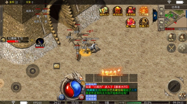 5、【无限挂机】专属安全挂机地图,搭配996云挂机功能,可实现24小时不间断升级与打材料。