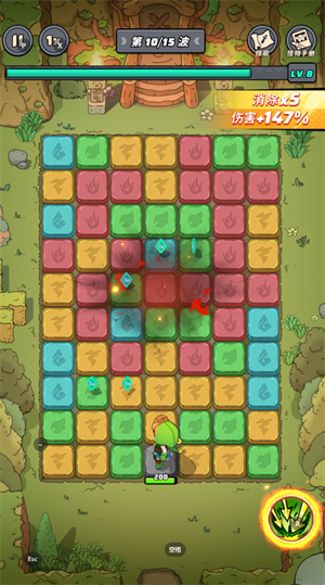 1、玩家借助划线消除方块的方式攻击敌人,消除的方块数量越多,攻击的威力就越强