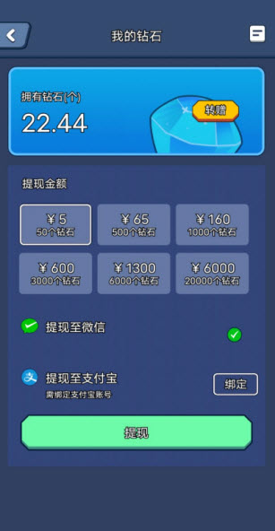 在这个游戏中,你可以通过观看广告获取金币或钻石,金币还能用于铸造宝石。目前这些钻石每个能卖0.3,并且你可以将其转赠他人或进行售卖。