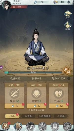 1、玩家可以通过提升自身的功法来加强自身属性