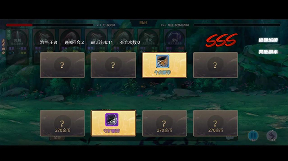 3、关卡胜利后可以通过翻牌来获得奖励和装备