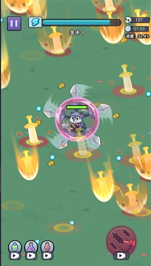 圣泉战争是一款休闲风格的小游戏,它以简单的屏幕滑动操作让玩家控制角色走位,同时角色会自动释放技能来击败怪物。游戏的战斗模式结合了自动攻击和策略走位,玩家需要在战斗中拾取怪物掉落的物品来升级角色,从而获得更多的技能。游戏的故事情节丰富,主要讲述勇者灰灰的冒险。玩家将跟随灰灰和他的伙伴们,一起经历一系列的冒险和挑战,最终揭露隐藏在背后的真相,并拯救他们的家园。