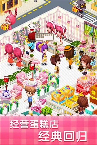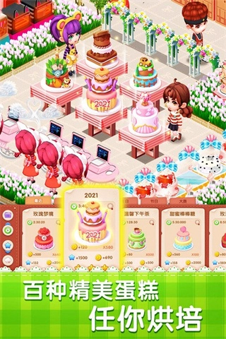 《梦幻蛋糕店》是一款温馨有趣的模拟经营类,可以自由制作蛋糕,布置店铺,招聘员工以及营销推广等来全方位体验经营一家蛋糕店的乐趣,拥有简单直观容易上手地操作和玩法以及可爱清新地画面风格,通过为顾客提供各种美味的小蛋糕以及对蛋糕进行装饰来吸引更多顾客以及提高出售的价格,同时可以利用所获得的金币来装饰和升级自己的店铺以提高吸引力。