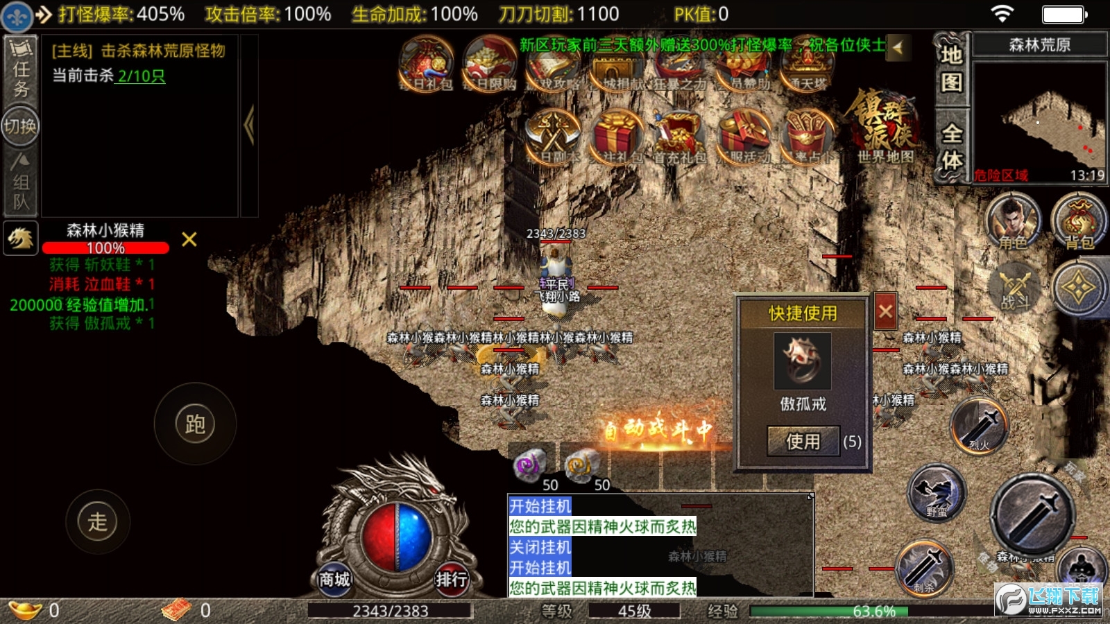 超快的升级方法,创新的神器系统,多种神器自由选择,还可以自由打造独特的武器哦。