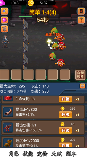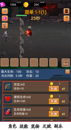 2、当积攒到足够数量的金币后,可借助下方的技能框对角色技能进行升级,以此增强战斗能力。