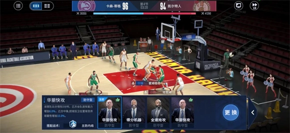 2、每一个教练会有一个适配的战术,当玩家的战术和教练的战术标签相吻合,则会提高球队的进攻或防守能力。玩家们也可以根据场上的形式来更改释放教练的被动技能,例如当比分落后时,可以更换对应的三分教练搏一搏;当时间不多时,可以利用造犯规的方式来增加比赛的回合时间;当自己强大时可通过抢断流来获取更多的得分机会等等全新的搭配玩法。