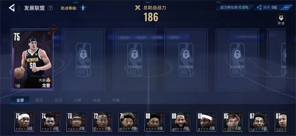 3、一些当前打不上主力的的球员通过下放到发展联盟来提示战力,并且在持续期间还能激活球员羁绊,通过提升发展联盟等级可提升球员战力的转化率,等级越高发展联盟中的球员带来的转化战力越高。
