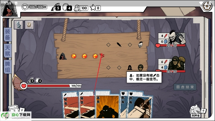 因为随机出现的卡牌不全是攻击卡牌,有的时候到只能使用防御卡牌来水操作,到下一个回合又重置了防御数量,感觉这一波操作就很多余,是有的时候敌方只剩下一点血,但却重复没刷到攻击卡牌,那还要操作次数就会重复的更多,比较浪费时间不说,后续这些无意义的操作也只能增加玩家不耐烦的程度,还有就是当我们行动点数用完之后,敌方的后续还有两步操作,如果都是攻击或者强力的技能,就会给我方的角色带来致命的打击。
