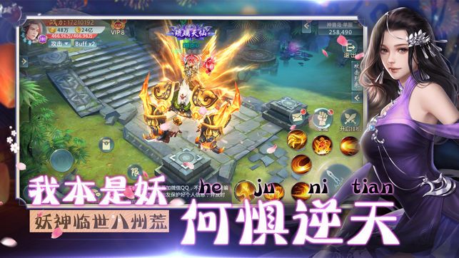 无论男女,都能踏上成仙或成魔的道路。世界任务开启,魔族大举入侵,修仙的大门已为你敞开;野外自由PK、团队争夺旗帜、竞技场上角逐冠军,让你在成魔的征途上不断前行。
