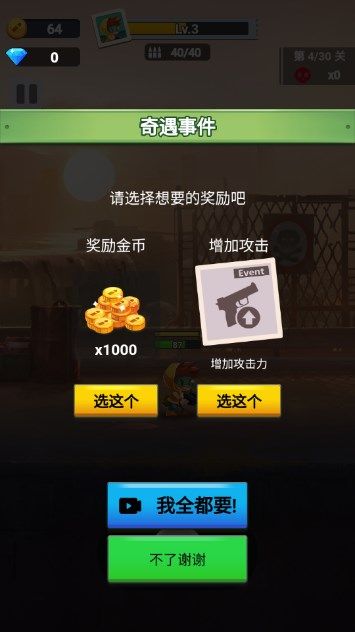 2、玩家击败僵尸升级后可以选择一种能力来提升自己