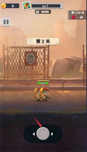 1、玩家能够借助摇杆操控角色向左或向右移动,角色会自行发起攻击。