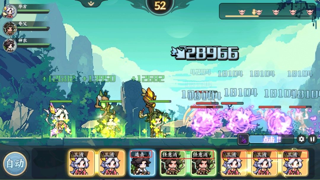 酷炫的三消战斗,任意消,二消,三消都有不同技能表现和效果。