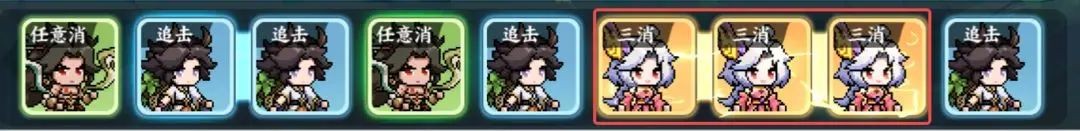 目前游戏里的消除类别一共有三种,即“三消”“任意消”与“追击”。