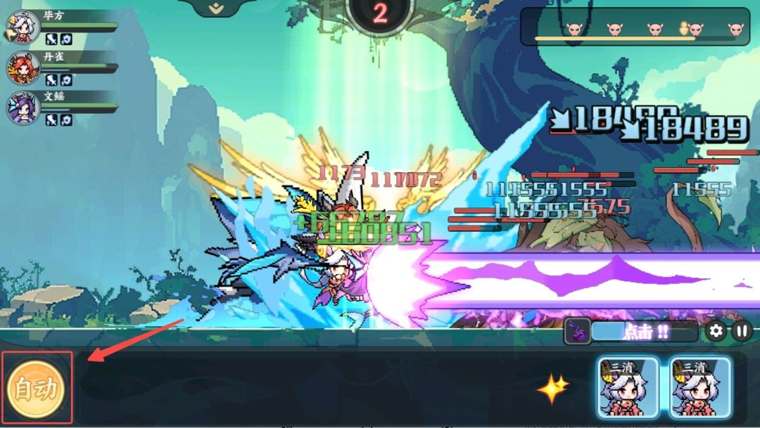 不过不用担心,在游戏前期我们就配备了自动战斗功能,它会依照“凑三消”的规则自动消块,足以应对大部分战斗。