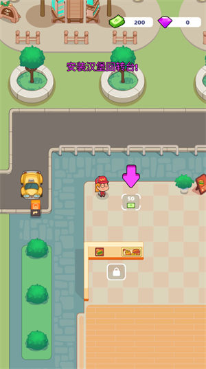 1、拖动屏幕控制角色在你的汉堡店内进行移动