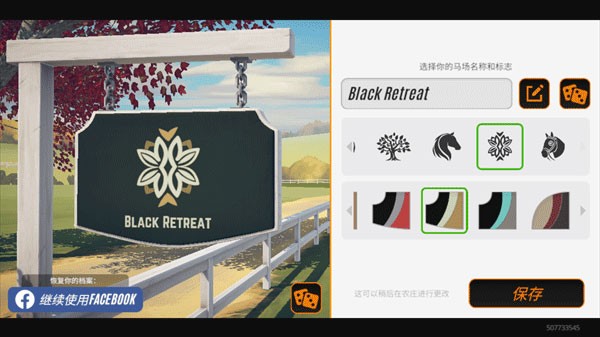需要给自家的马场起个名字,还能设计马场的标志。要是暂时没琢磨出合适的名字也不用急,可以选随机生成的名字,之后在农庄里就能修改。