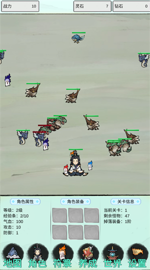 1、角色会自动攻击敌人,当消灭掉一波敌人后,就能获取资源道具