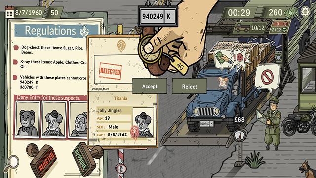 你将在黑色边境2完整版中扮演边防警察的角色,检查车辆,仔细检查文件,智胜试图携带毒品、武器和违禁品潜入的走私者。每天都有一系列新的挑战