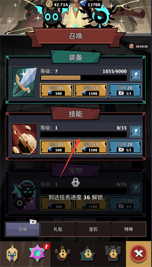 3、可以在召唤系统中召唤技能,抽取强力的技能卷轴,从而获得特殊效果