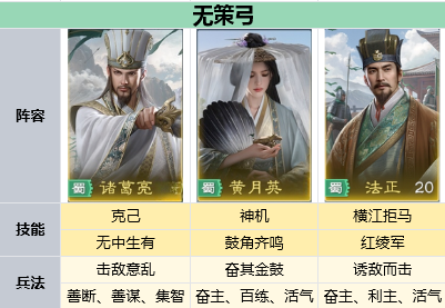 诸葛亮控制队:诸葛亮、黄月英、法正(满红白板皆可用)