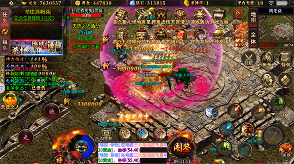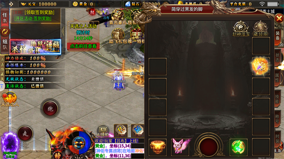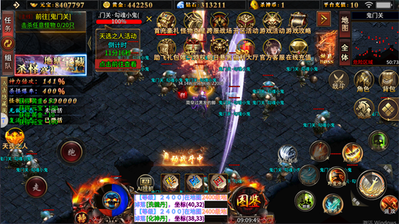 3、神器BOSS每30分钟会刷新一次,要是当前没有神器BOSS可挑战,大家可以去打野外BOSS或者在高爆地图挂机!同时记得积攒进入4大陆所需的材料,等到达4大陆后,要积极参与炼魂地狱活动!