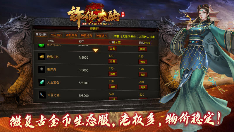 3、货币靠打,材料靠打,装备靠打,生态大服,物价保值!