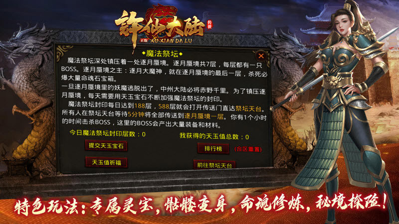 3、炼狱幻境产出的天玉宝石,在中州魔法祭坛提交后能换取丰厚的经验奖励。