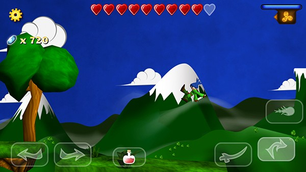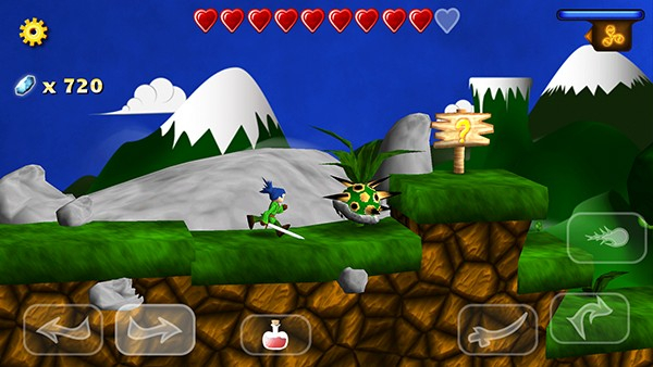 游戏设有虚拟按键,如上图左下角分别有左右两个按键,玩家只要进行点击即可完成相应动作。双击两下方向键即可使人物进入奔跑状态。