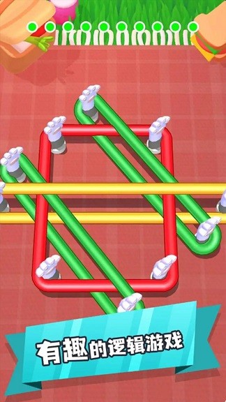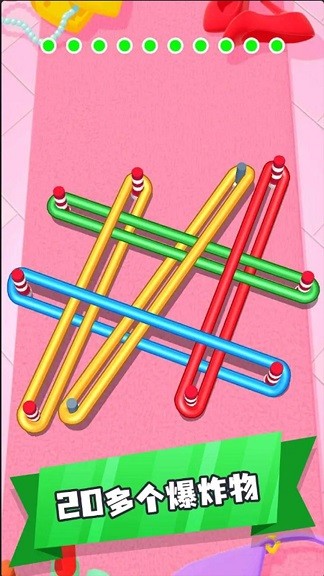 在每一层关卡,你都得认真思索,找出恰当的办法来顺利解开橡皮筋。