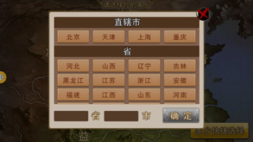 玩家需要选择自己的家乡,根据省市名称可以自动匹配三国时期的地区;
