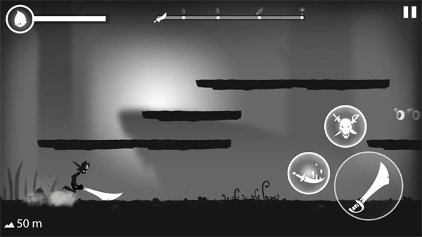3、点击屏幕任意位置即可完成跳跃,再次点击屏幕任意位置会触发二段跳,屏幕右侧设有攻击键与技能键。