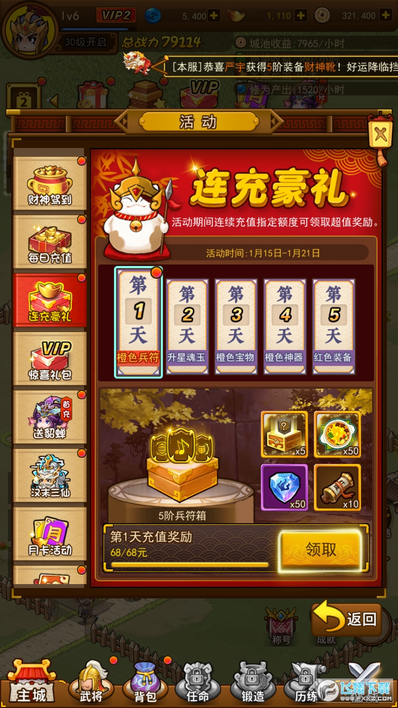 《城主三国》是一款竖版三国策略类游戏,玩家将以城主身份投身三国乱世。跟随游戏指引可逐步解锁丰富玩法,体验卡通Q萌的画风。游戏无需内购,就能领取VIP月卡与极品武将,感兴趣的话不妨点击体验!